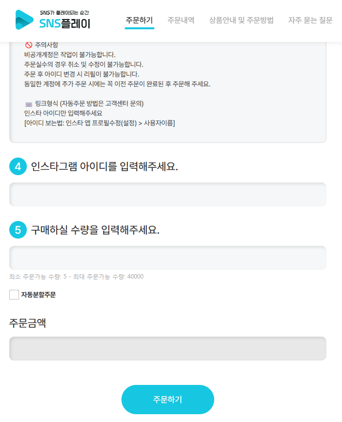 새로 만든 인스타그램 계정관련해서 관리가 필요해서 검색을 하다가 후기가 많았던 SNS 플레이에서 내돈내산을 해본 후기를 남겨보려고 해요. 아래 링크에서 회원가입을 먼저 해줍니다.